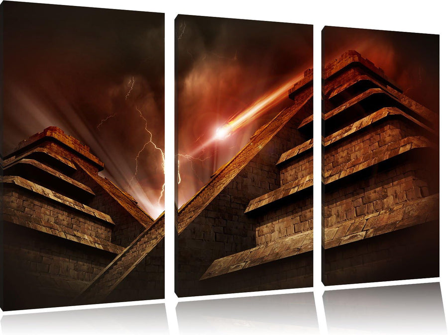 Pixxprint Majatempel bei Gewitter als Leinwandbild/Grösse: 3 Teilig (120x80) cm/Wandbild/Kunstdruck/