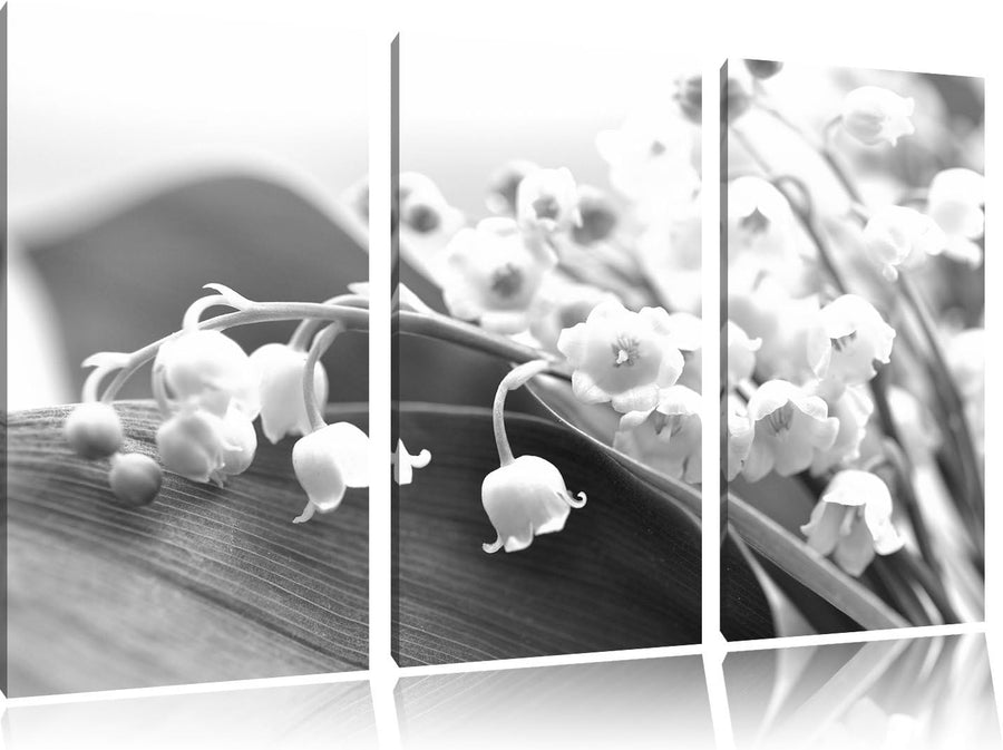 Pixxprint Maiglöckchen Ostern Kunst B&W 3-Teiler Leinwandbild 120x80 Bild auf Leinwand, riesige Bild