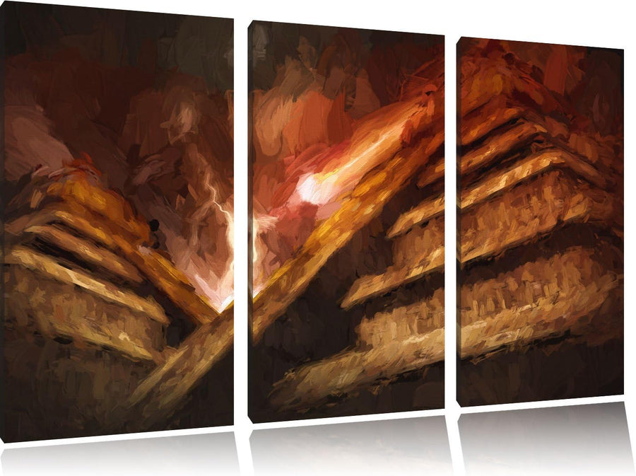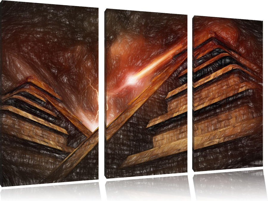 Pixxprint Majatempel bei Gewitter Bunstift Effekt 3-Teiler Leinwandbild 120x80 Bild auf Leinwand