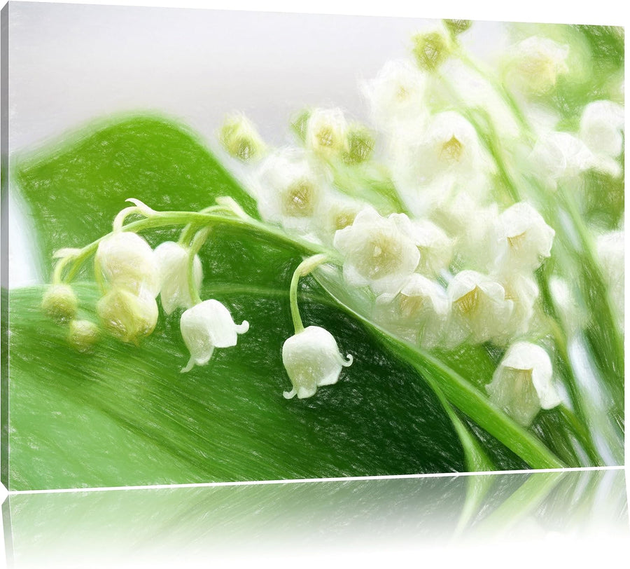 Pixxprint Maiglöckchen Ostern Kunst Pinsel Effekt, Format: 100x70 auf Leinwand, 100x70