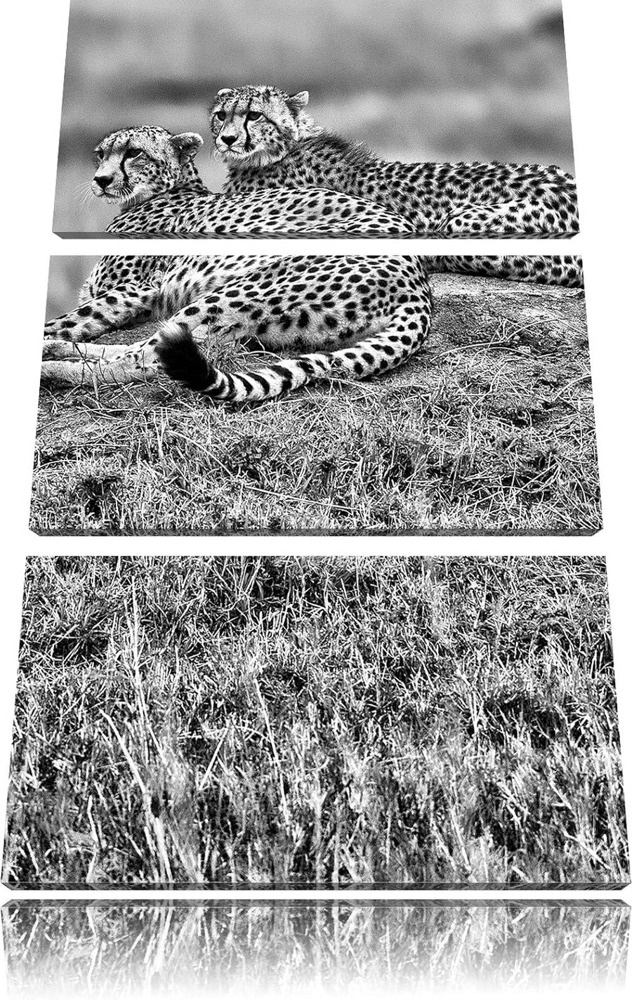 Pixxprint majestätische Geparden auf Stein als Leinwandbild/Grösse: 3 Teilig (120x80) cm/Wandbild/Ku