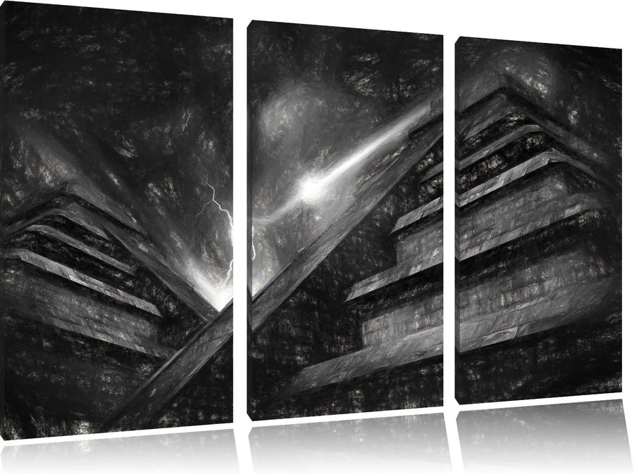 Pixxprint Majatempel bei Gewitter Schwarz/Weiss 3-Teiler Leinwandbild 120x80 Bild auf Leinwand