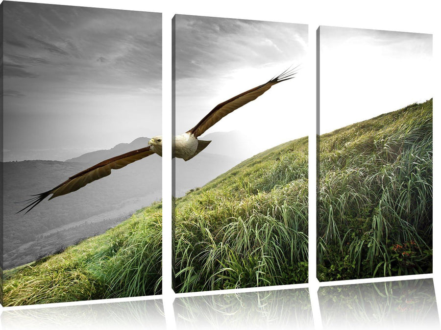 Pixxprint Majestätischer Weisskopfseeadler Schwarz/Weiss 3-Teiler Leinwandbild 120x80 Bild auf Leinw