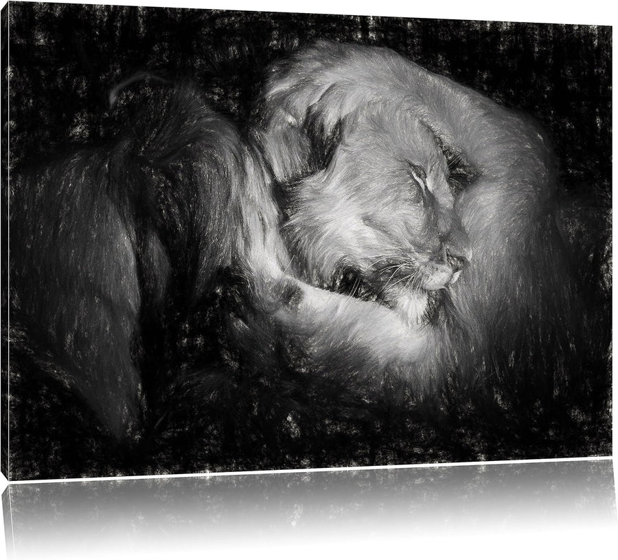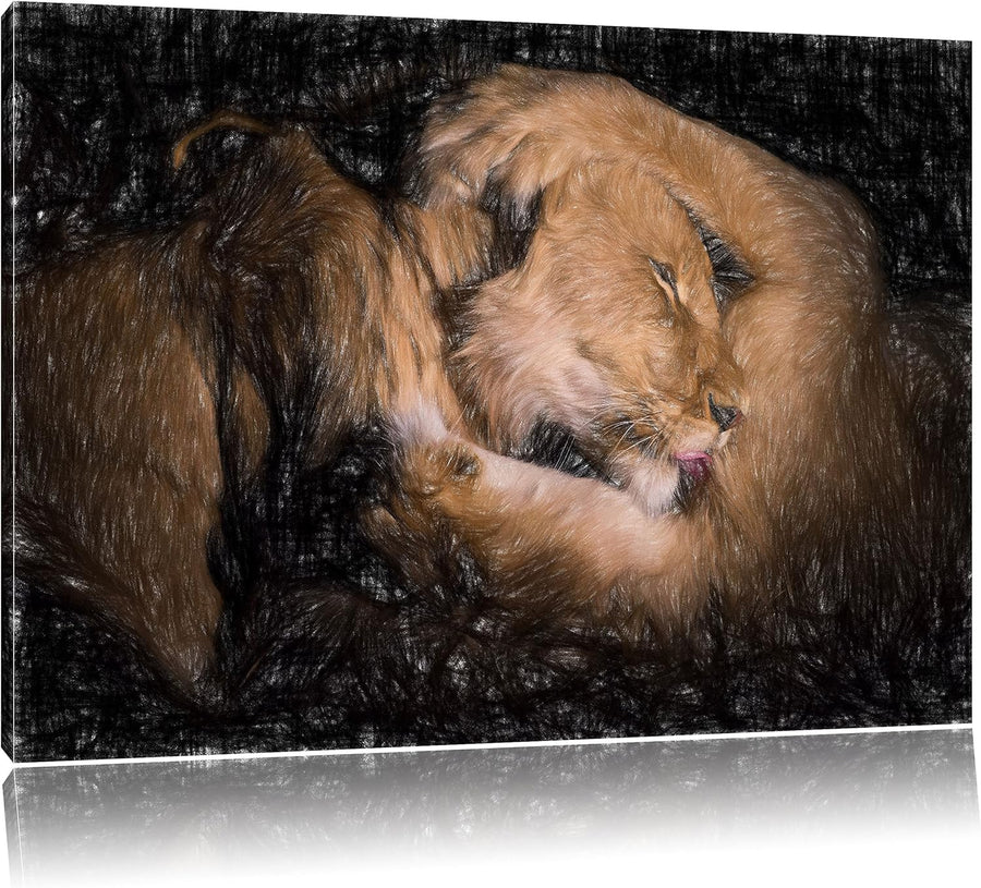 Pixxprint Männer & Frauen Löwe kuscheln als Leinwandbild/Grösse: 100x70 / Wandbild/Kunstdruck/fertig