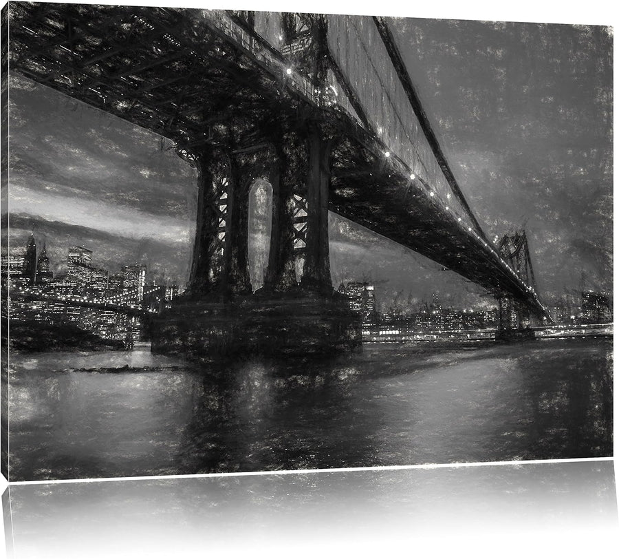 Pixxprint Manhatten Brücke New York Kunst / 100x70cm Leinwandbild bespannt auf Holzrahmen/Wandbild K