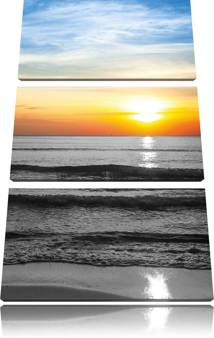 Pixxprint Malibu Beach Sunrise Water Sand als Leinwandbild/Grösse: 3 Teilig (120x80) / Wandbild/Kuns