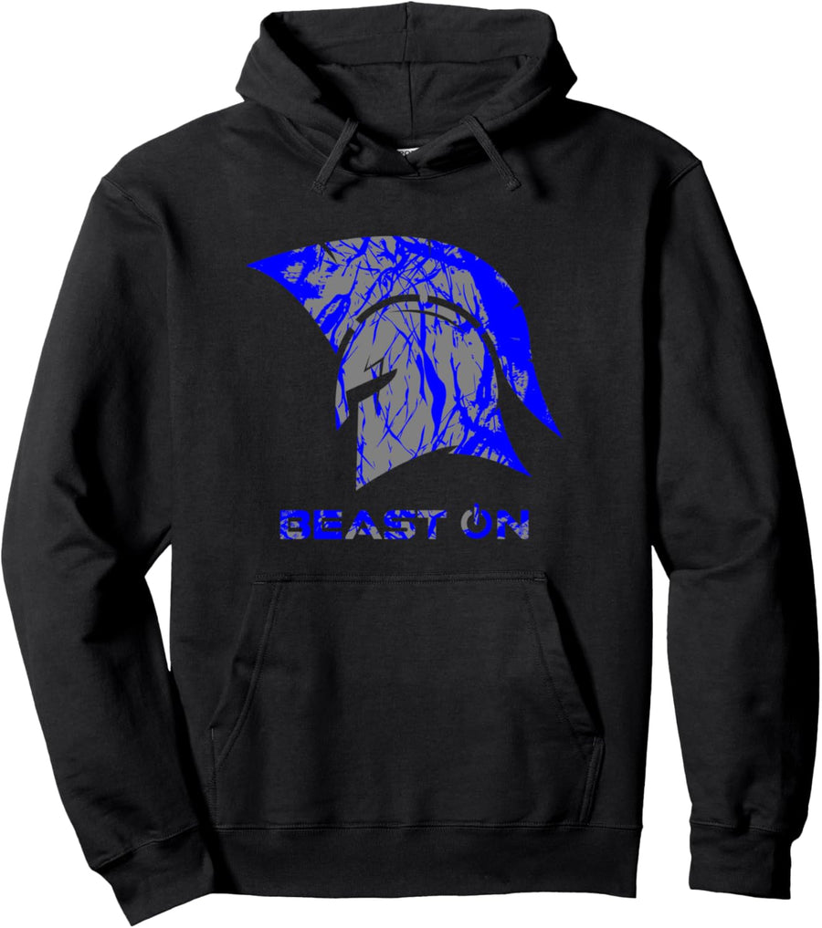 Spartaner Helm | Blauer Gladiator Helm Beast ON Gym Fitness Pullover Hoodie