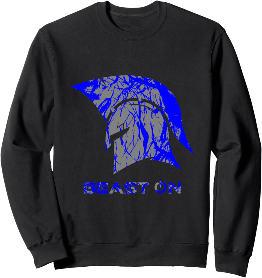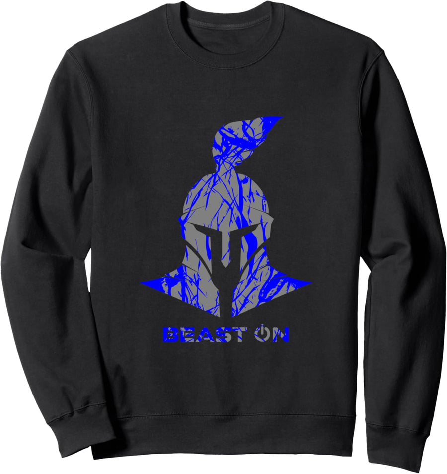Spartaner Helm | Blauer Gladiator Helm Beast ON Gym Fitness Sweatshirt