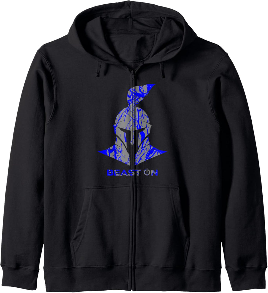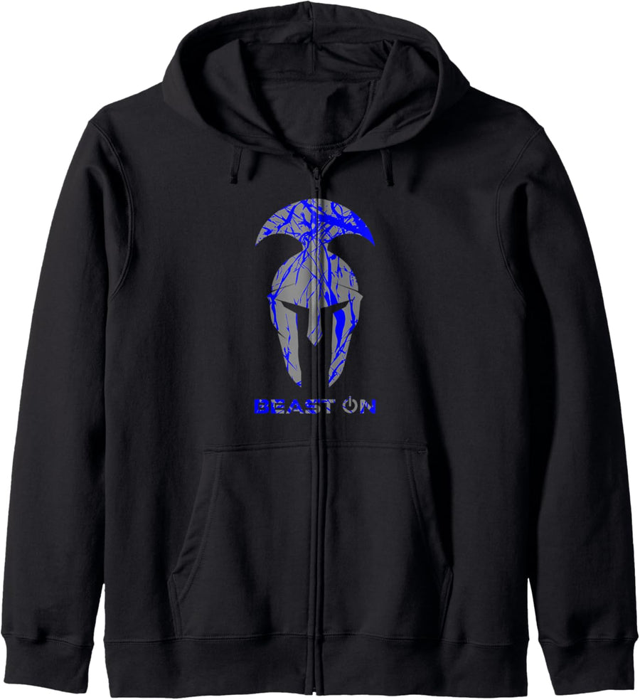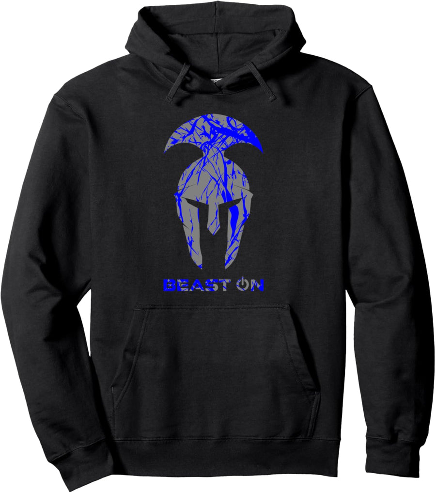 Spartaner Helm | Blauer Gladiator Helm Beast ON Gym Fitness Kapuzenjacke