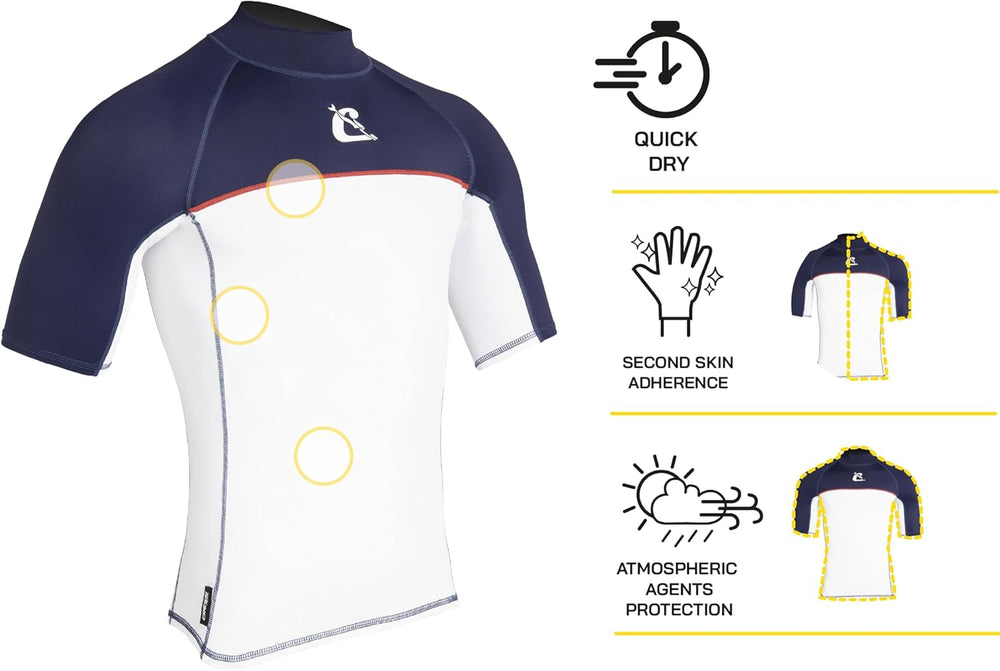 Cressi Shield Man Rash Guard Short/Sl Schützender Rashguard für SUP und Wassersport Weiss/Blau XXL,