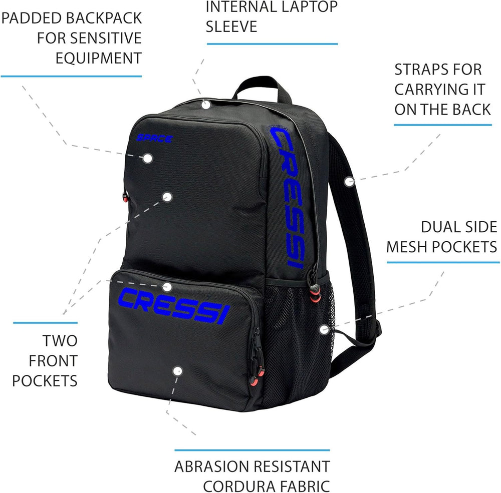 Cressi Space - Unisex Erwachsene Rucksack - Hohe Qualität Schwarz/Logo Blau, Schwarz/Logo Blau