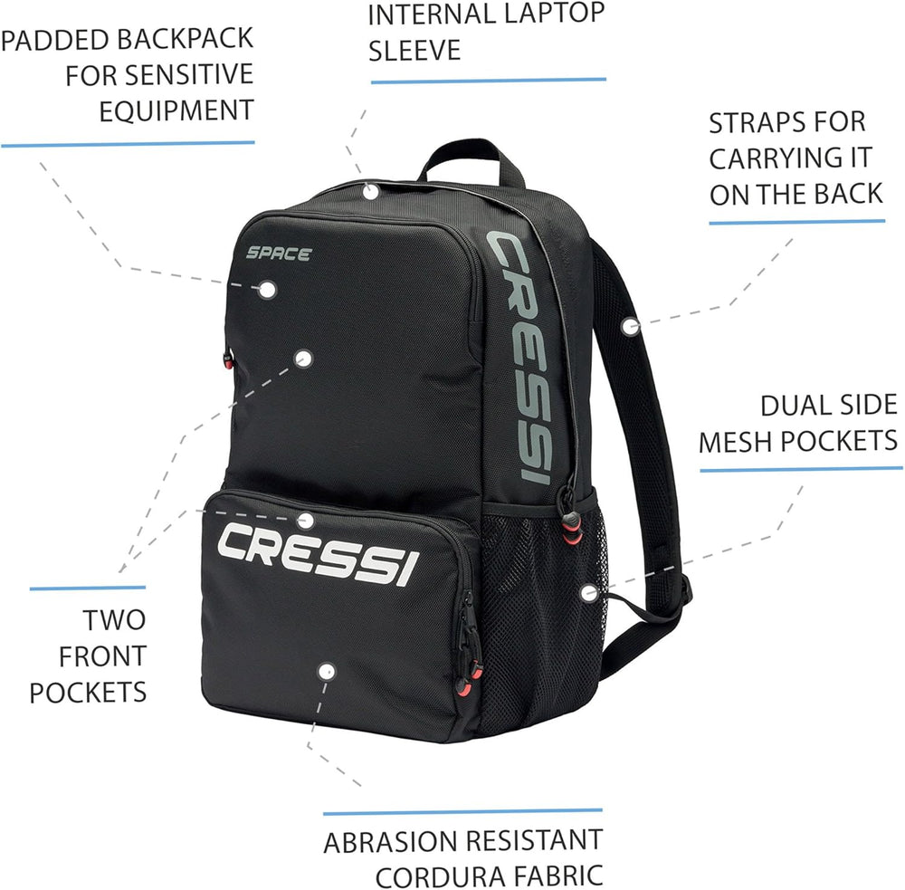 Cressi Space - Unisex Erwachsene Rucksack - Hohe Qualität Schwarz/Logo Weiss Silber, Schwarz/Logo We