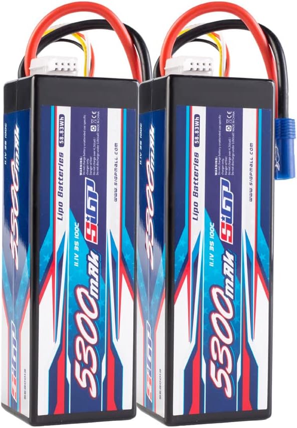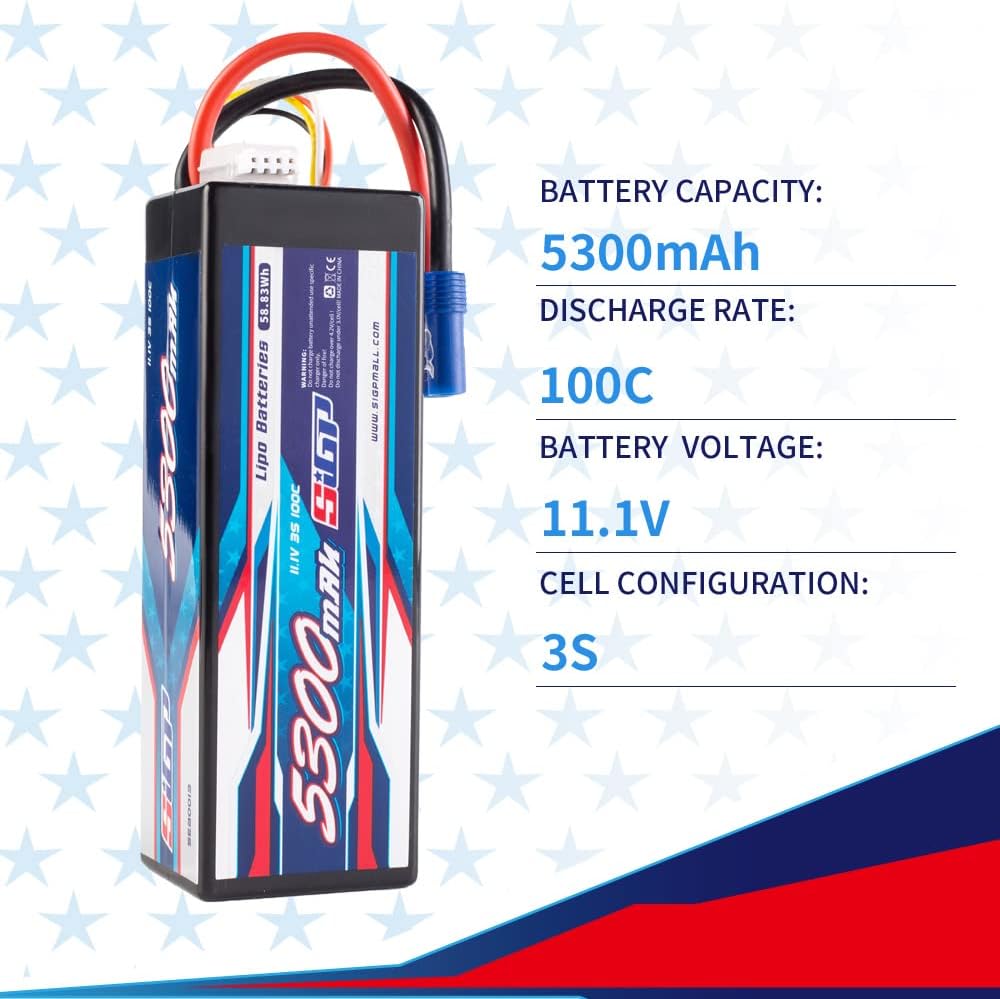 SIGP 3S 11.1V 5300mAh Lipo Battery 100C Hard Case with Deans EC5 Plug for RC Car Truck Boat Vehicles