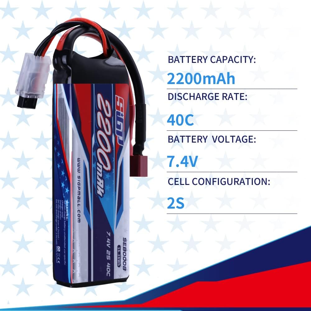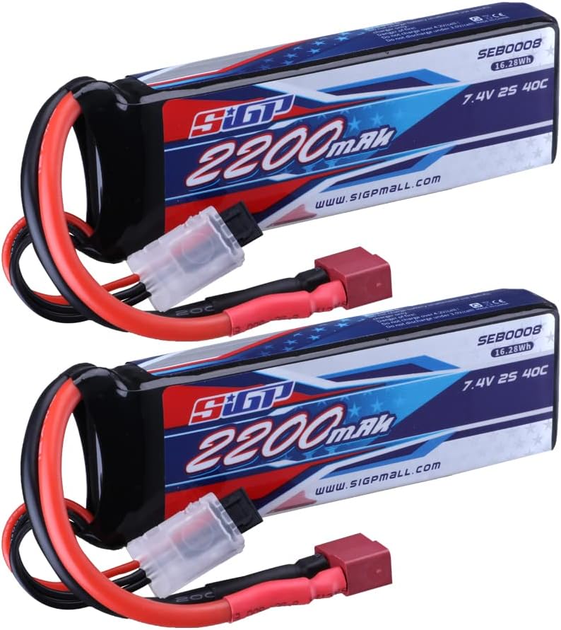 SIGP 2 Stück 2S 7.4V Lipo Akku 2200mAh 40C mit T-Stecker für RC Fahrzeuge,Auto,Tank,LKW,Boot,Truggy