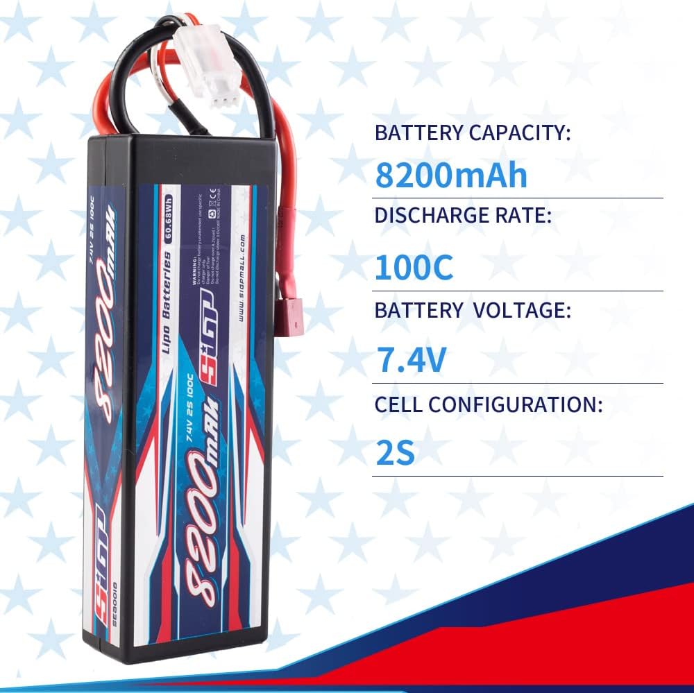 SIGP 2S 7.4V Lipo Battery 8200mAh 100C Hard Case with Deans T Plug for RC Car Truck Boat Vehicles Ta
