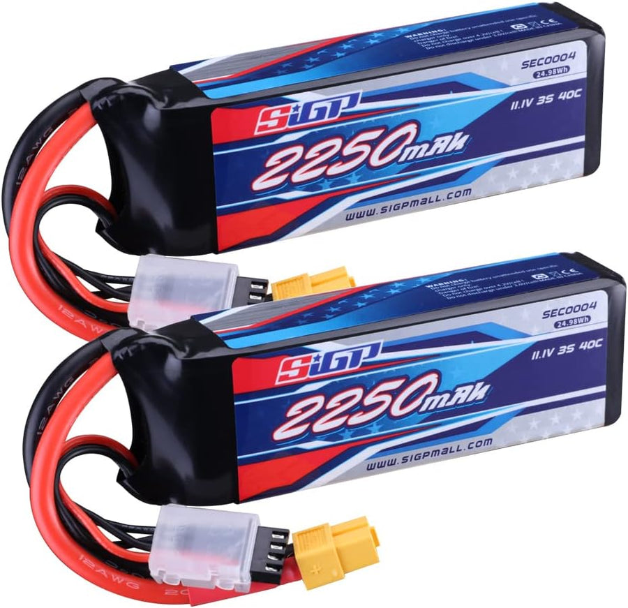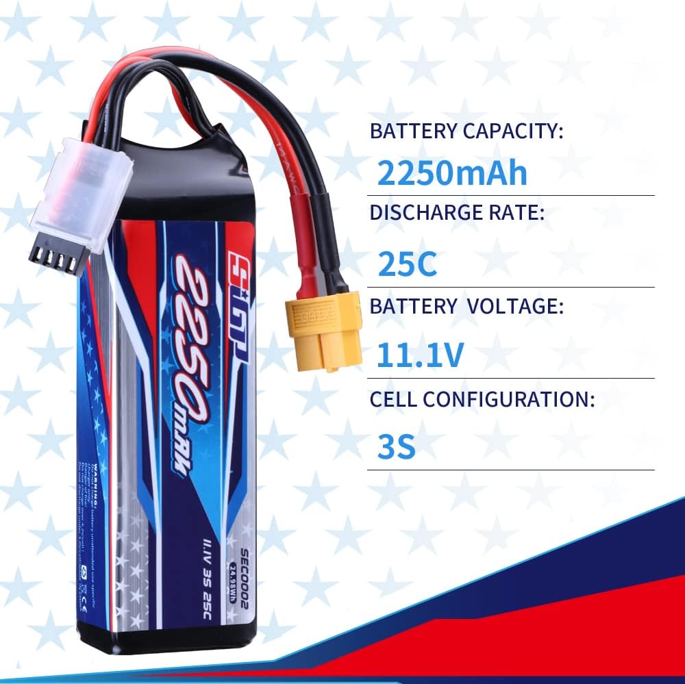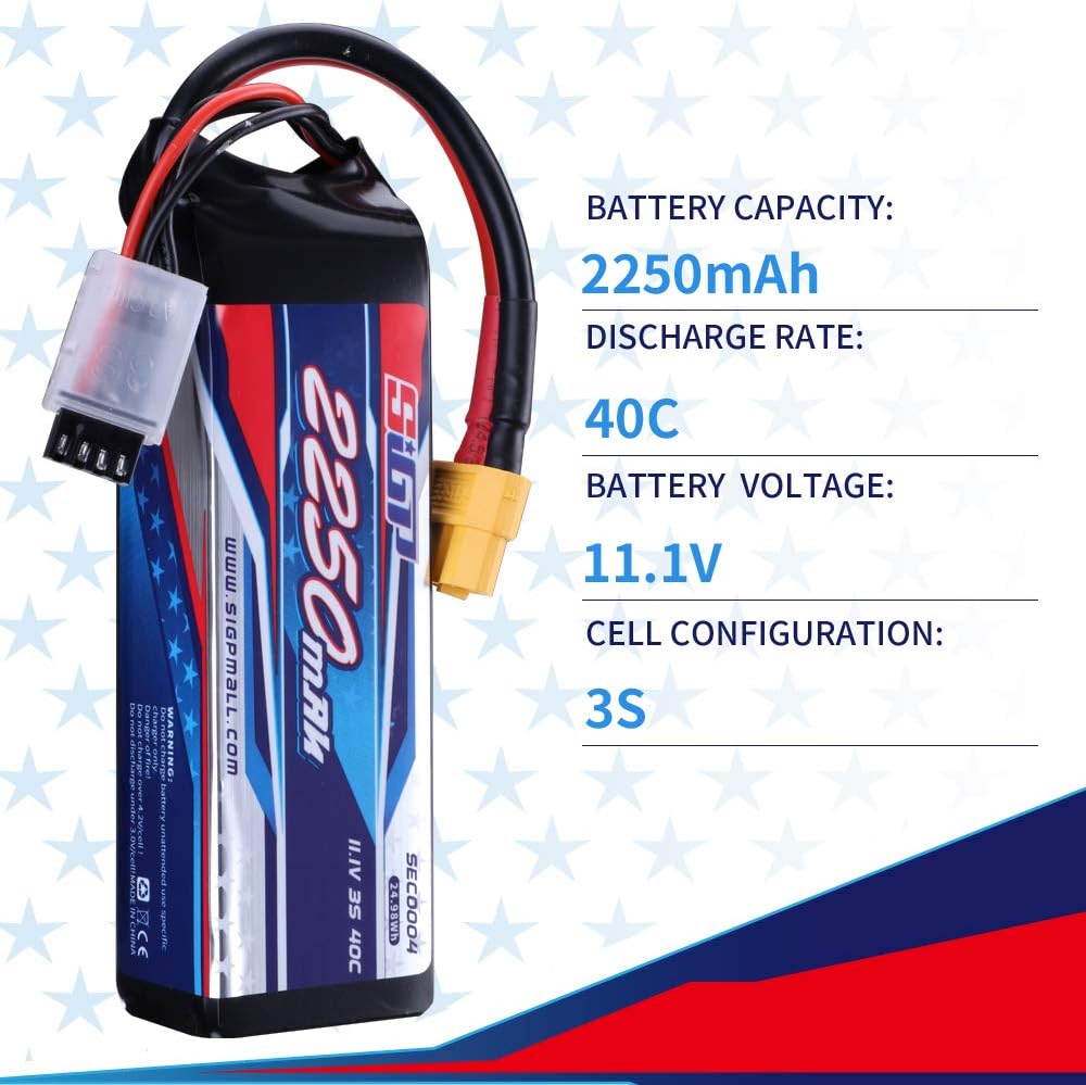 SIGP 3S 11,1V Lipo Akku 2250mAh 25C mit XT60-Stecker für RC Fahrzeuge,Auto,Tank,LKW,Boot,Truggy Raci