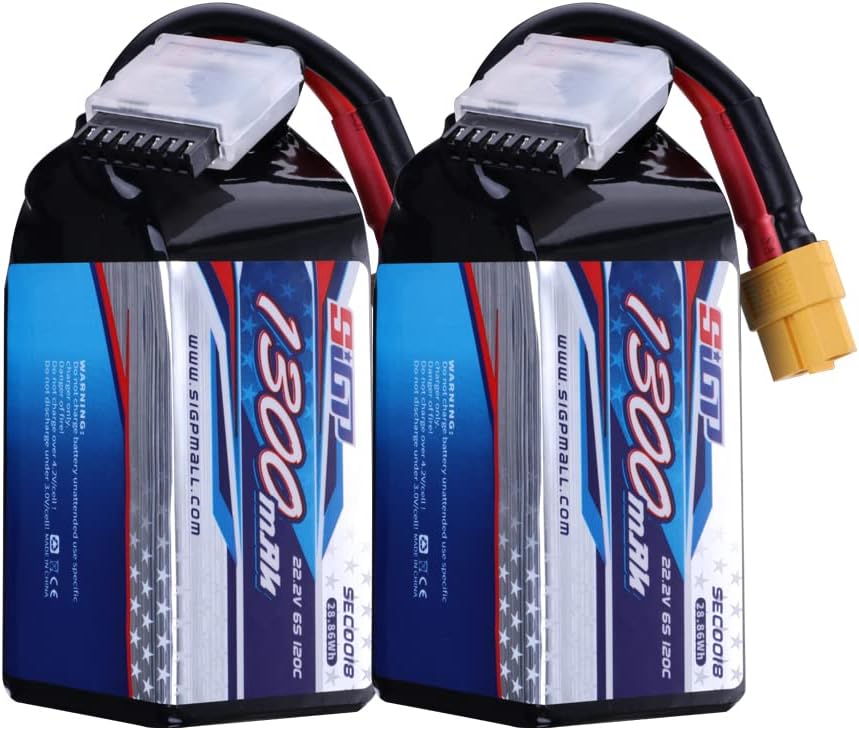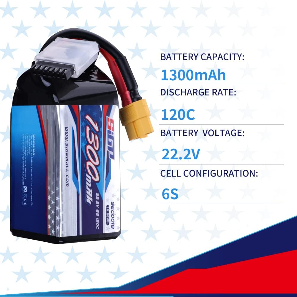 SIGP 1300mAh 6S Lipo Akku 22,2V 120C Soft Pack mit XT60 Anschluss für RC FPV Quadcopter Flugzeug Hub