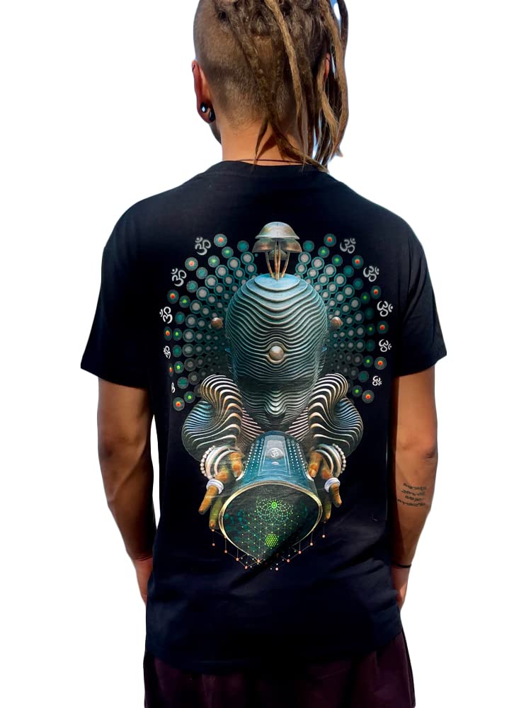 schwarzes Fraktal Alien T-Shirt Goa Psytrance (XXL), XXL