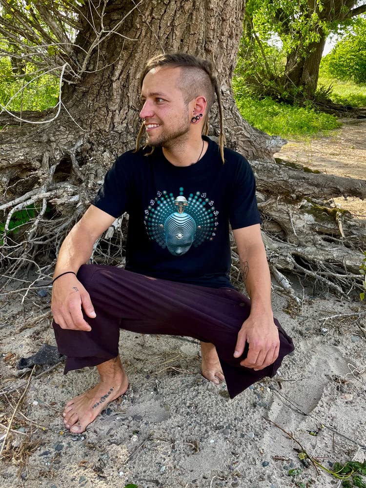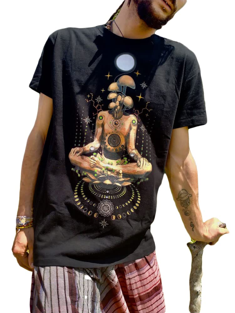 schwarzes Om Bell Aum Mushrooms T-Shirt (M), M