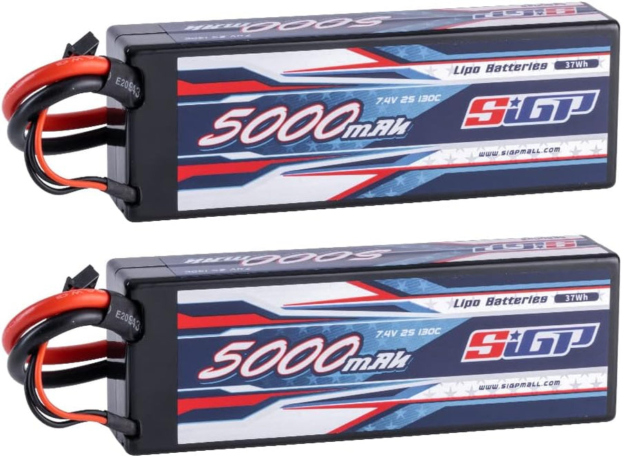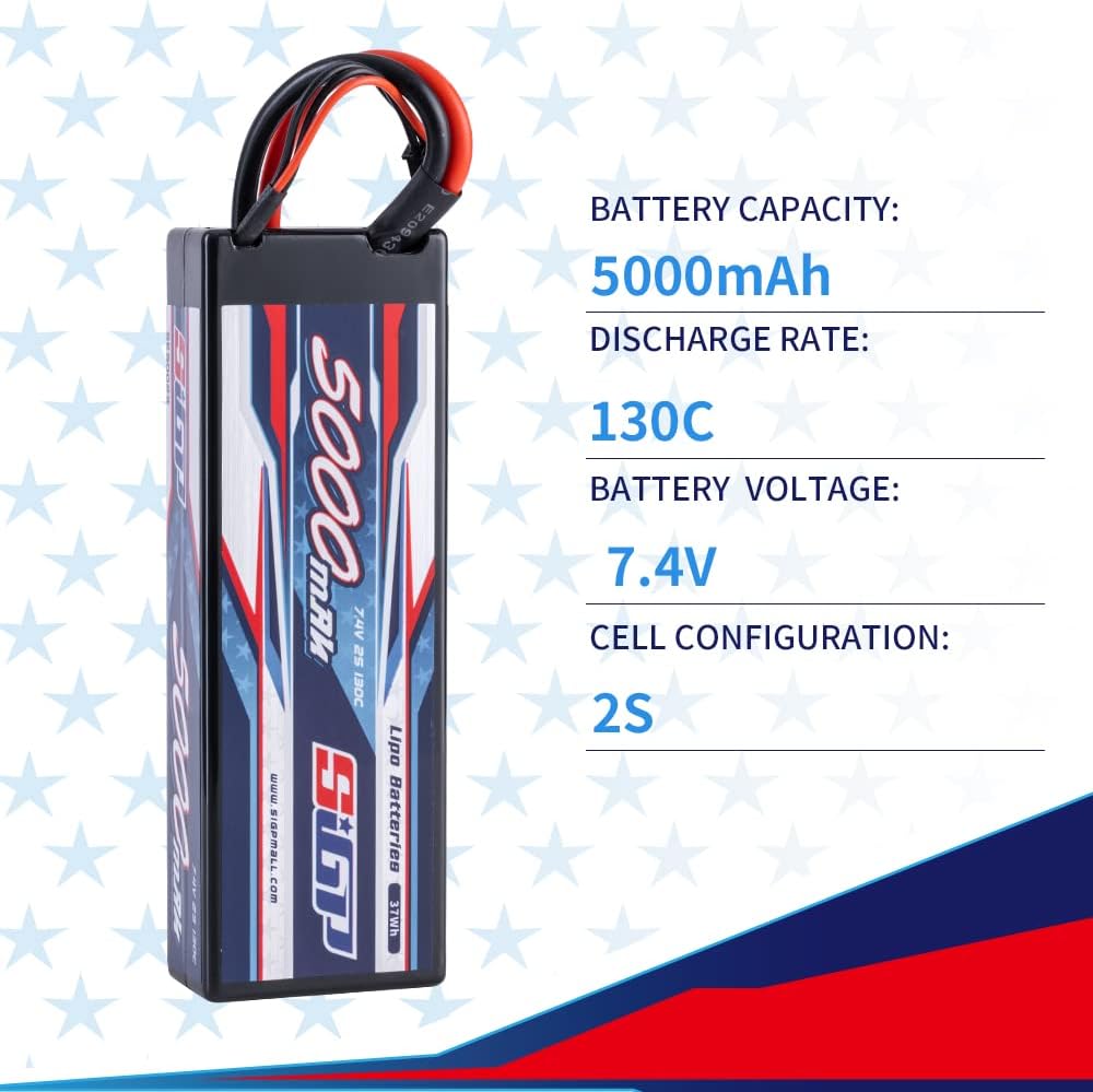 SIGP 2S 7.4V Lipo Battery 5000mAh 130C Hard Case with Deans T Plug for RC Car Truck Boat Vehicles Ta