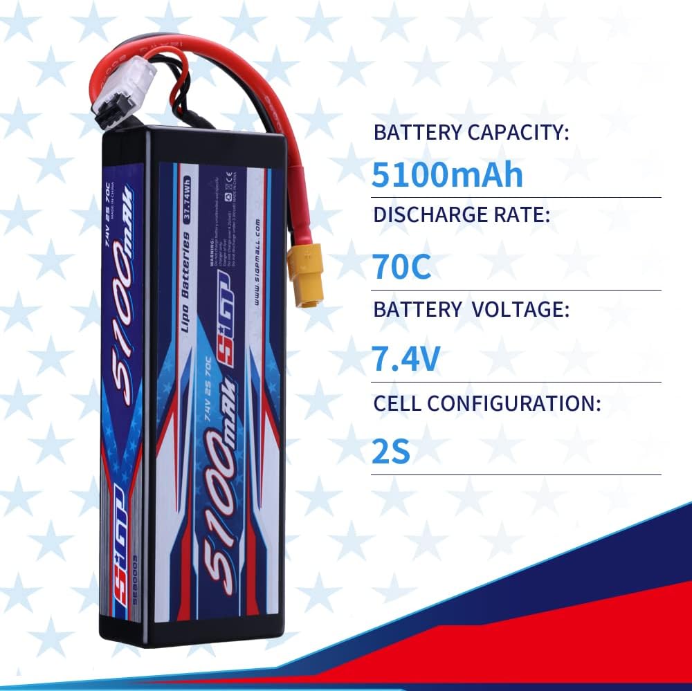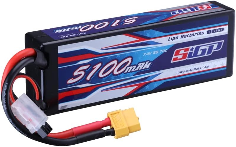 SIGP 2S Lipo Akku 7.4V 5100mAh 70C RC Akku Hardcase mit XT60 Anschluss für RC Fahrzeuge Auto LKW Tan