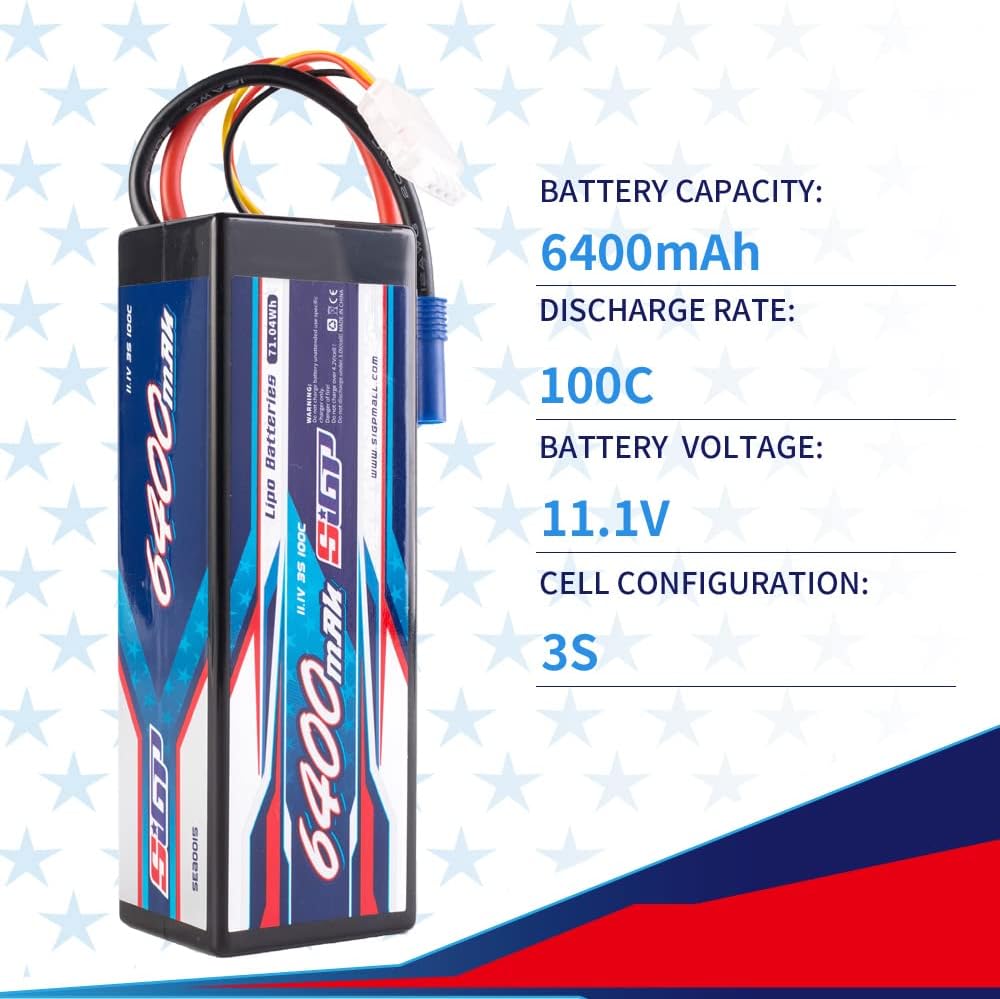 SIGP 3S 11.1V Lipo Battery 6400mAh 100C Hard Case with Deans EC5 Plug for RC Car Truck Boat Vehicles