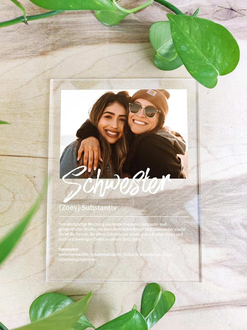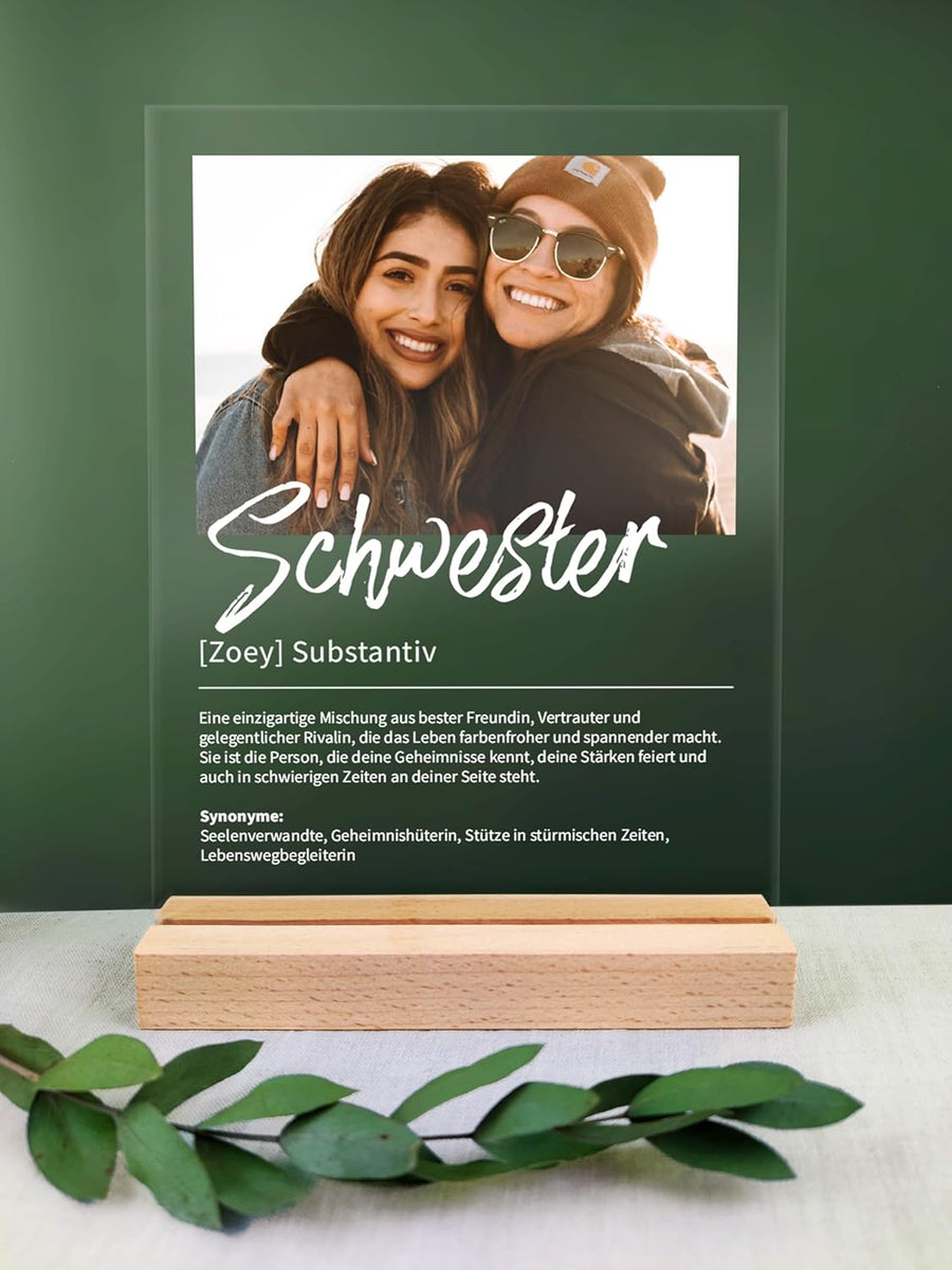 Schwester Geschenk personalisiert - Acryl Foto Geschenk: Definition wie im Duden - Geschenke für Sch