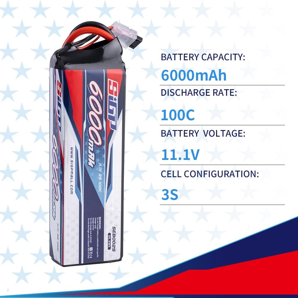SIGP 3S 11.1V Lipo Battery 6000mAh 100C Soft Case with Deans T Plug for RC Car Truck Boat Vehicles T