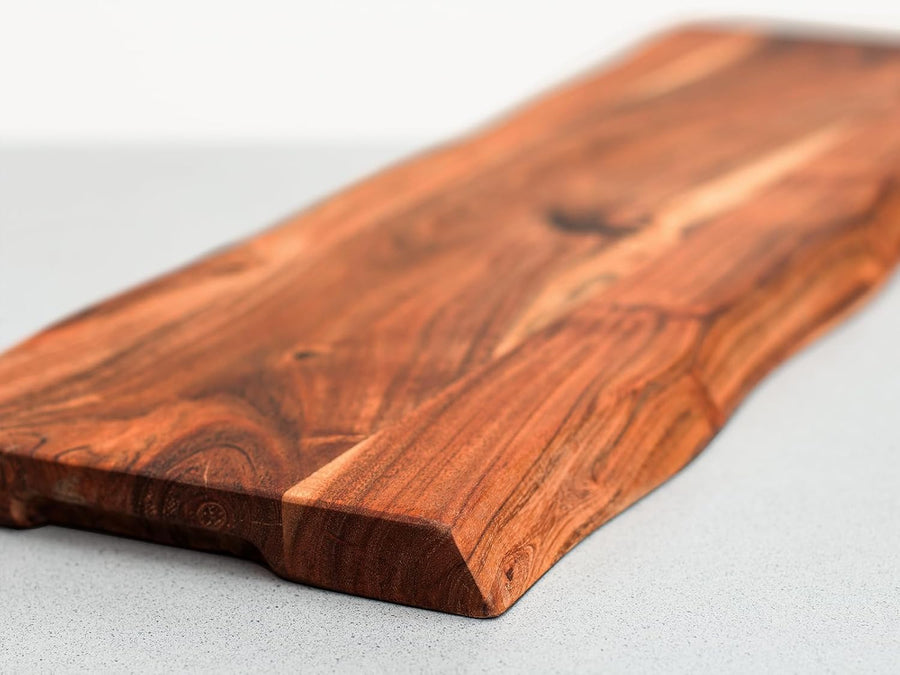 Servierbrett 68x23 Holz I Tragegriffe an den Seiten I Brotzeitbrett rustikal mit Baumkante I Schneid