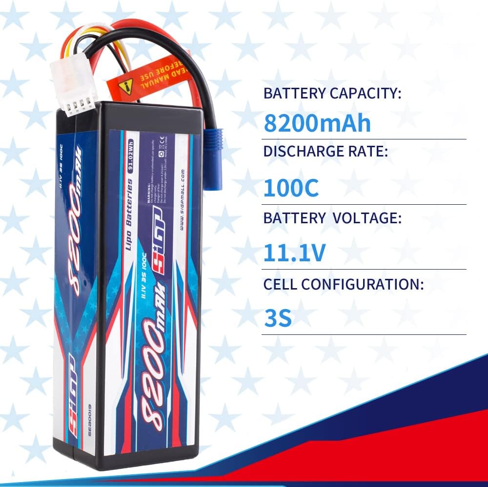 SIGP 3S 11.1V Lipo Battery 8200mAh 100C Hard Case with Deans EC5 Plug for RC Car Truck Boat Vehicles