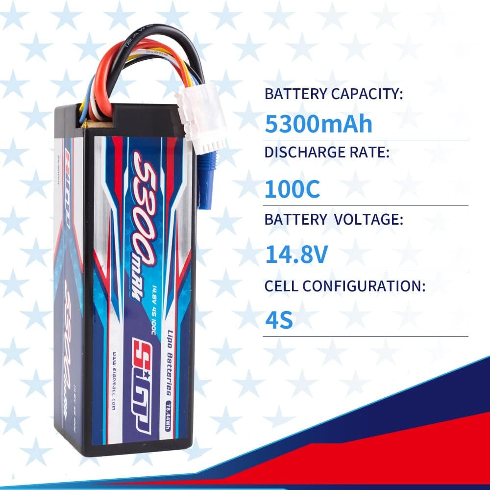 SIGP 4S 14.8V Lipo Akku 5300mAh 100C Hard Case with Deans EC5 Plug for RC Car Truck Boat Vehicles Ta
