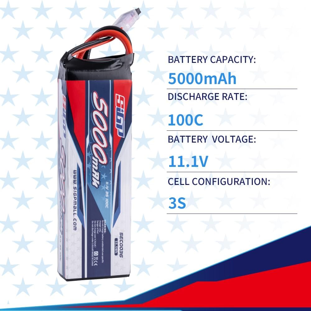 SIGP 3S 11.1V Lipo Battery 5000mAh 100C with EC5 Plug for RC Car Vehicles Tank Truck Boat Truggy Rac