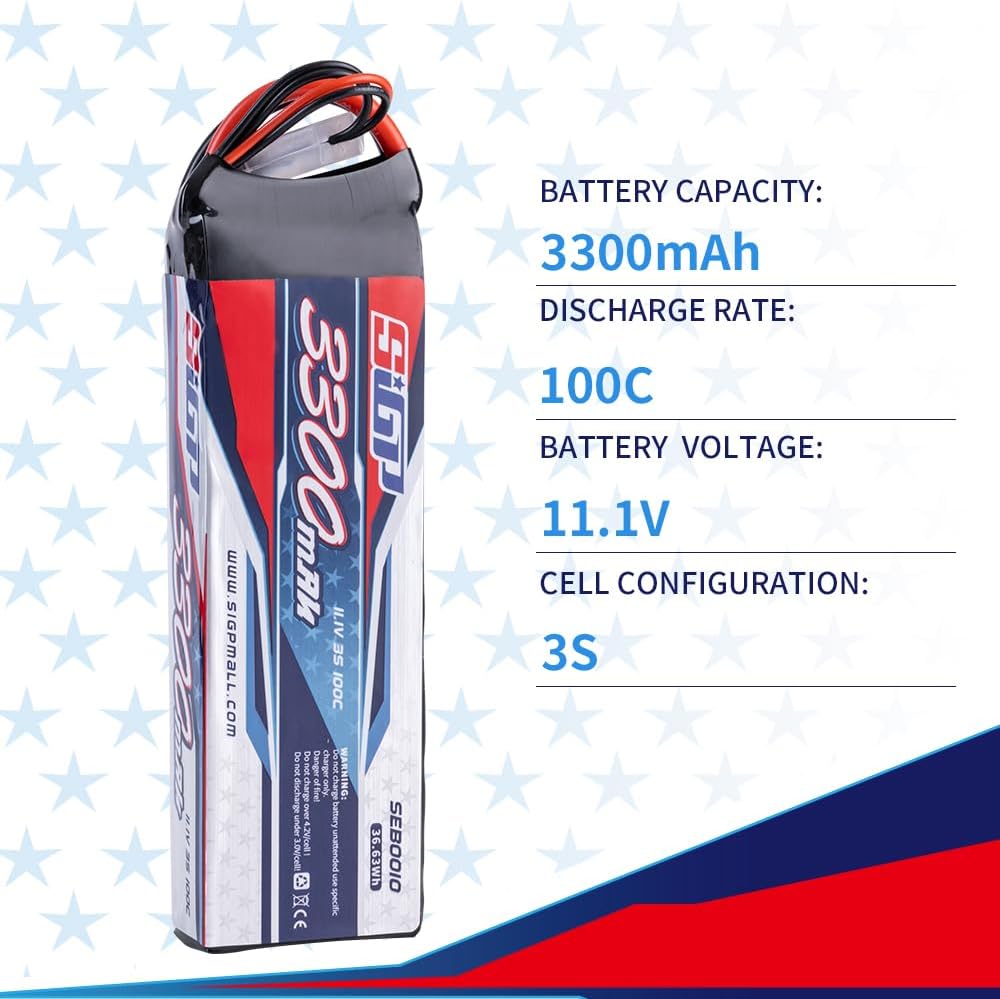 SIGP 3S 11.1V Lipo Battery 3300mAh 100C with XT60 Plug for RC Vehicles Car Tank Truck Boat Truggy Ra