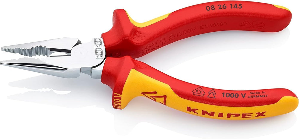 Knipex Spitz-Kombizange verchromt, isoliert mit Mehrkomponenten-Hüllen, VDE-geprüft 145 mm 08 26 145