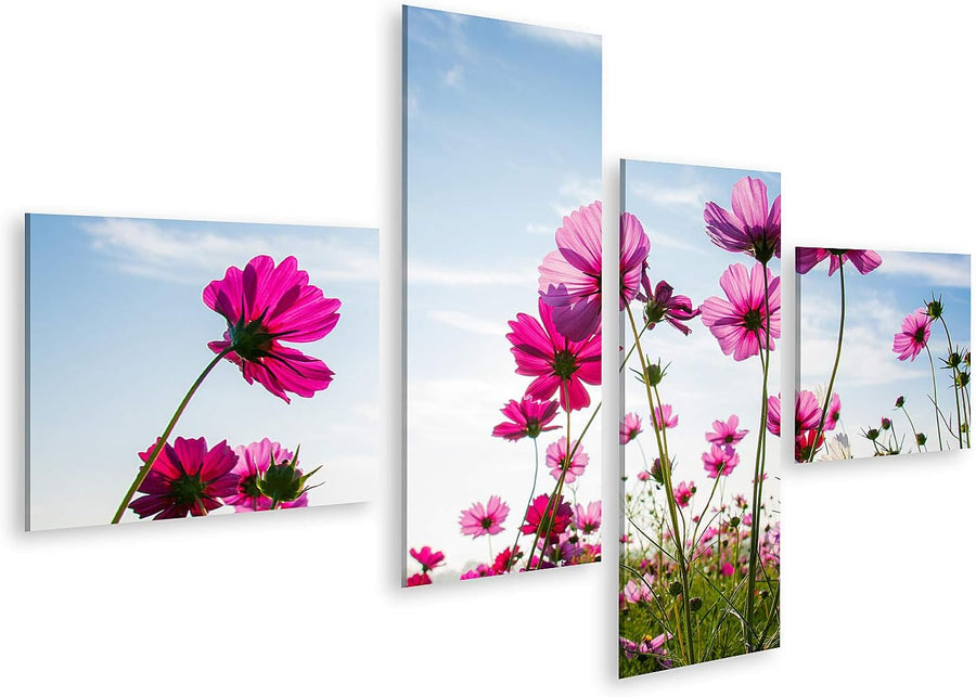 islandburner Bild auf Leinwand Blumenfeld Pink Blauer Himmel Bilder Wandbilder Poster Leinwand 150x8