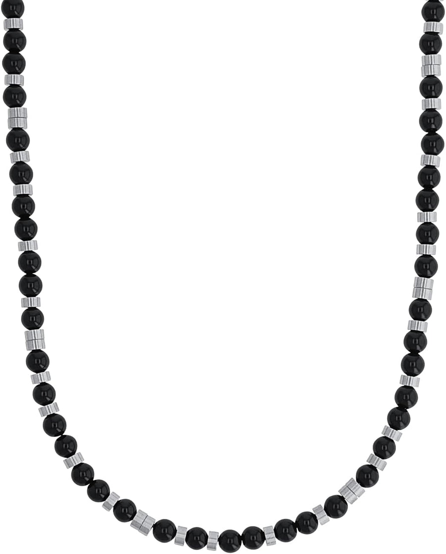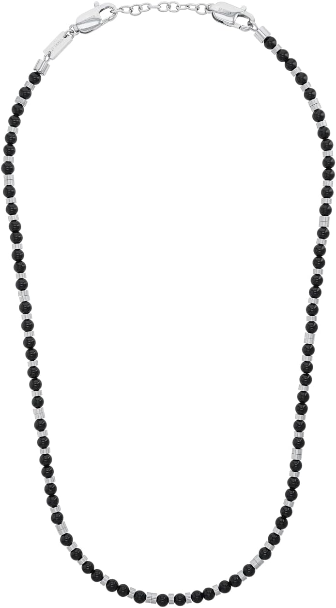 s.Oliver Halskette Edelstahl Herren Halsschmuck, mit Achat, 46+5 cm, Schwarz, Kommt in Schmuck Gesch