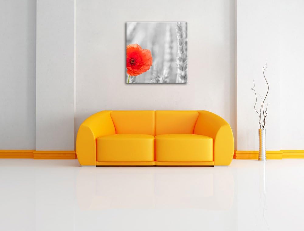 Pixxprint Mohnblume im Kornfeld als Leinwandbild/Grösse: 70x70 cm/Wandbild/Kunstdruck/fertig bespann