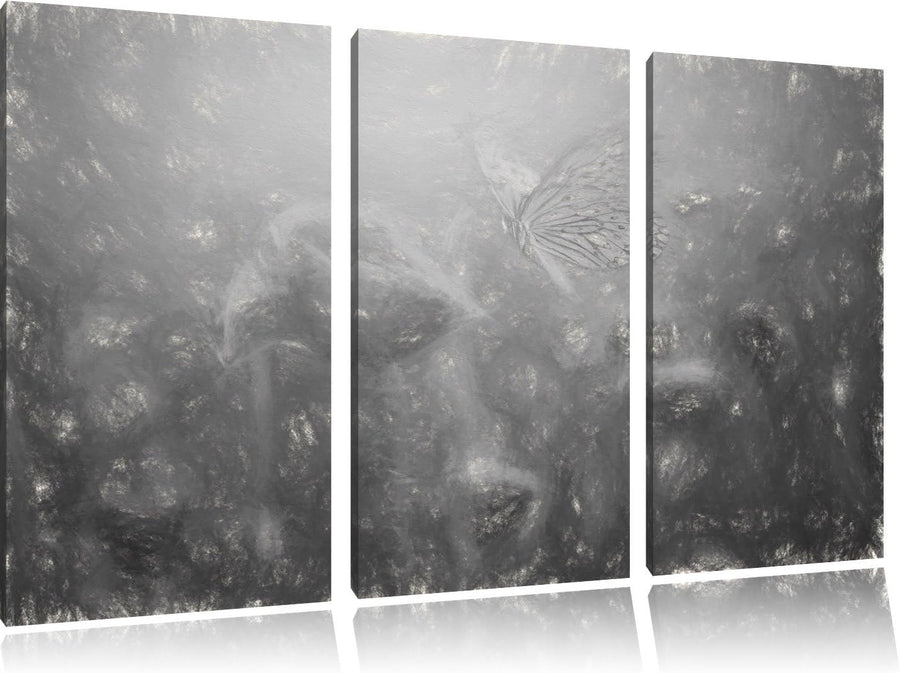 Pixxprint Mohn und Schmetterling Kunst / 3-Teilig/Gesamtmass 120cm Leinwandbild bespannt auf Holzrah