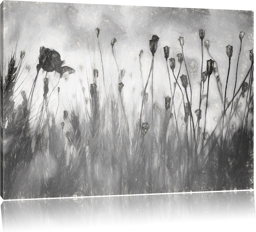 Pixxprint Mohn im Kornfeld Pinsel Effekt, Format: 100x70 auf Leinwand, 100x70