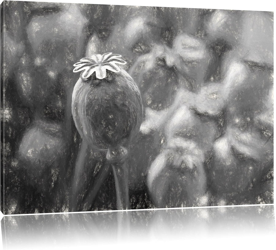Pixxprint Mohnkapsel der Mohnblume Kunst B&W als Leinwandbild/Grösse: 100x70 / Wandbild/Kunstdruck/f