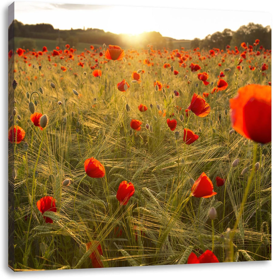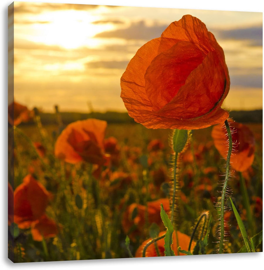 Pixxprint Mohnfeld bei Sonnenuntergang als Leinwandbild Quadratisch/Grösse: 70x70 / Wandbild/Kunstdr