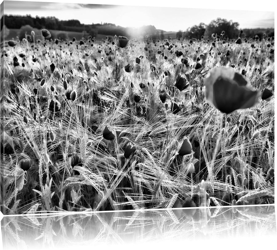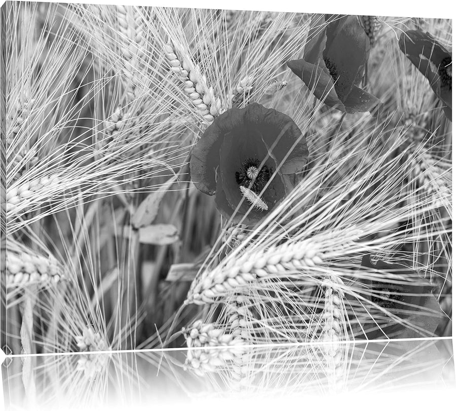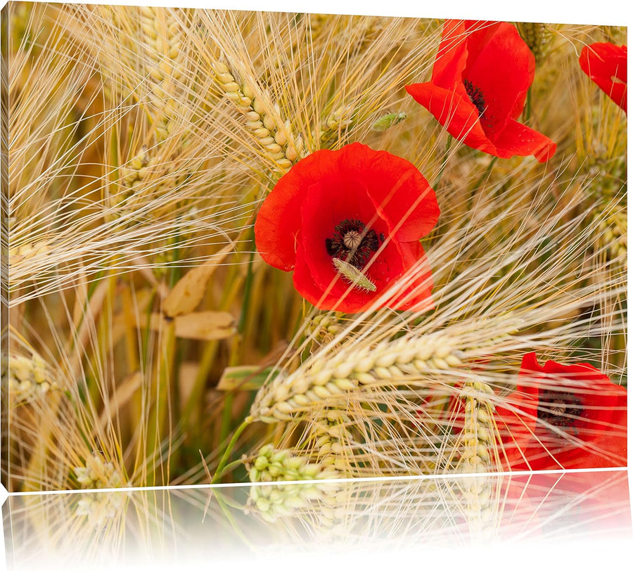 Pixxprint Mohnblumen auf dem Mais-Feld als Leinwandbild/Grösse: 100x70 cm/Wandbild/Kunstdruck/fertig