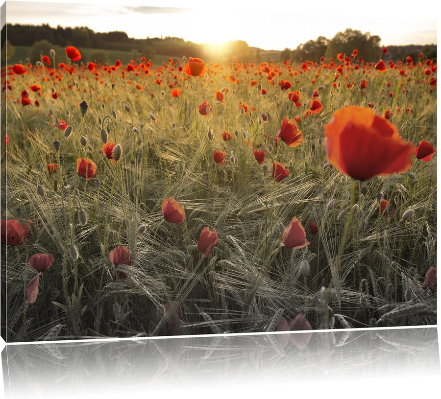 Pixxprint Mohnfeld bei Sonnenuntergang als Leinwandbild/Grösse: 100x70 cm/Wandbild/Kunstdruck/fertig
