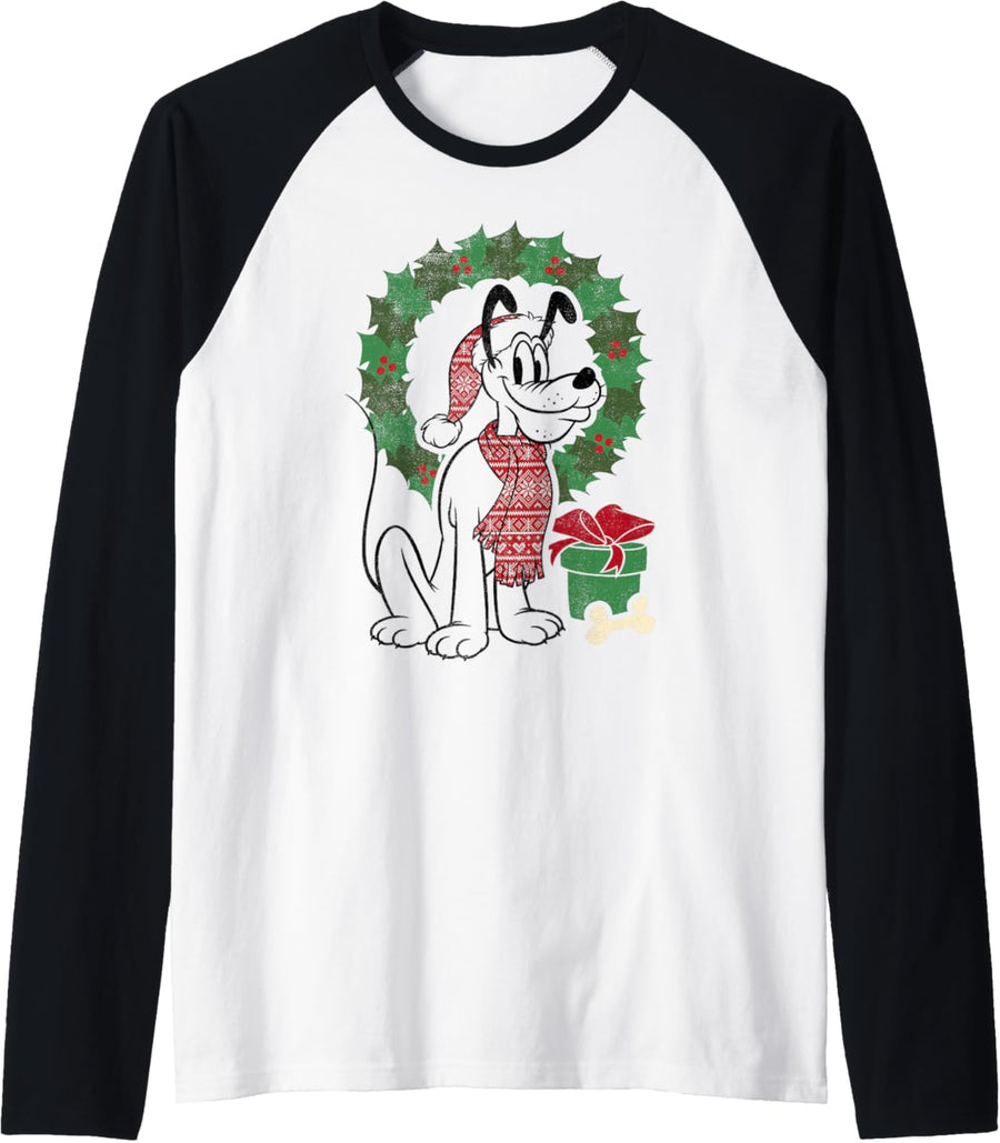 Disney Mickey And Friends Weihnachten Pluto Wreath Portrait Raglan