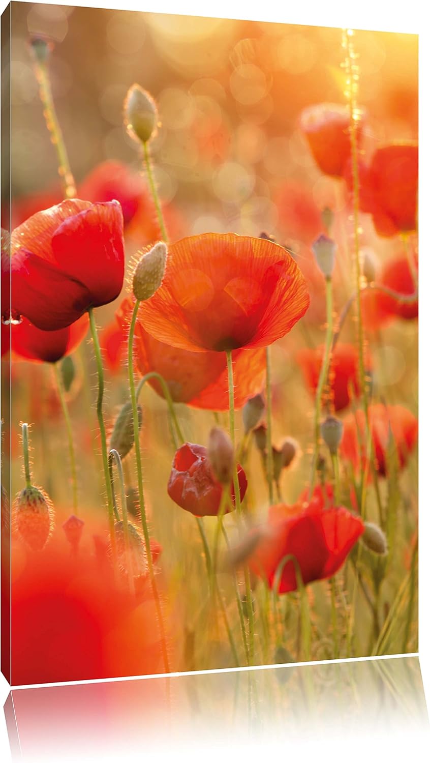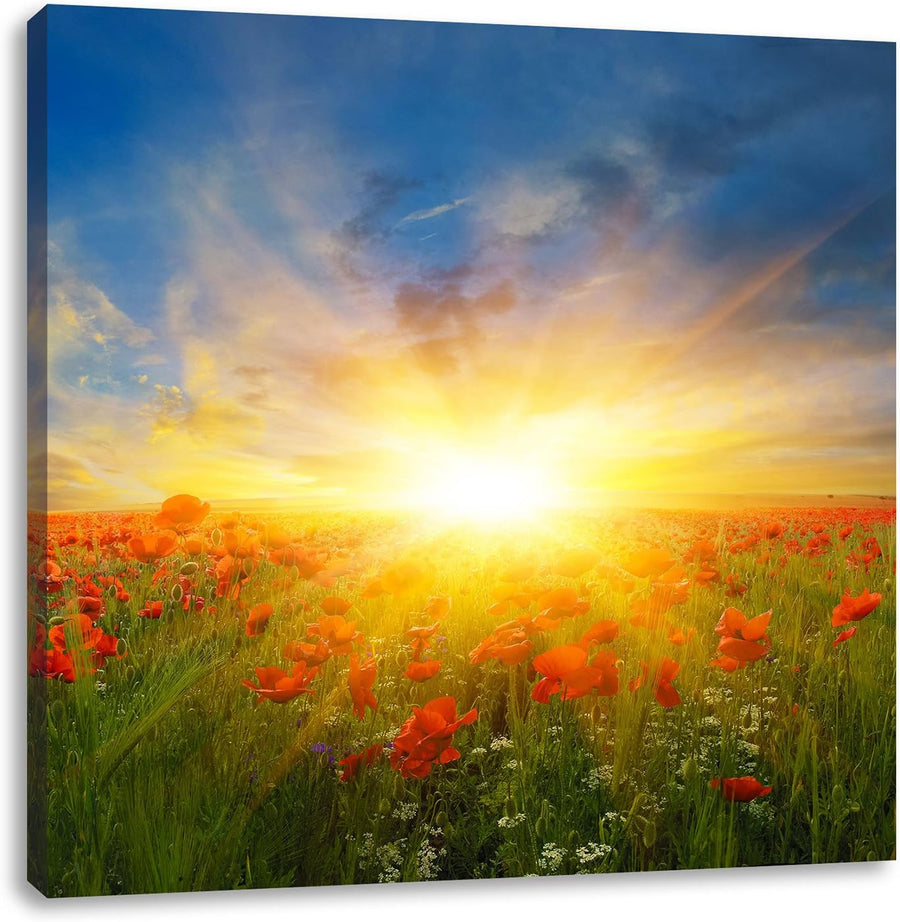 Pixxprint Mohnwiese im Sonnenuntergang als Leinwandbild/Grösse: 70x70 cm/Wandbild/Kunstdruck/fertig