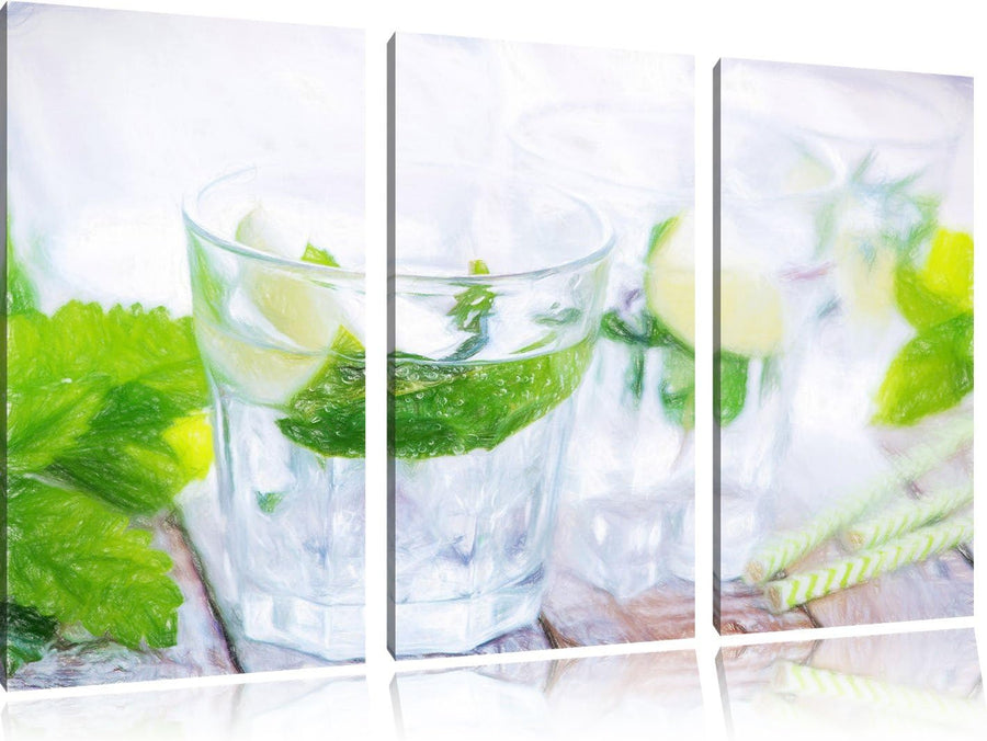 Pixxprint Mojito Cocktail als Leinwandbild/Grösse: 3 Teilig (120x80) cm/Wandbild/Kunstdruck/fertig b