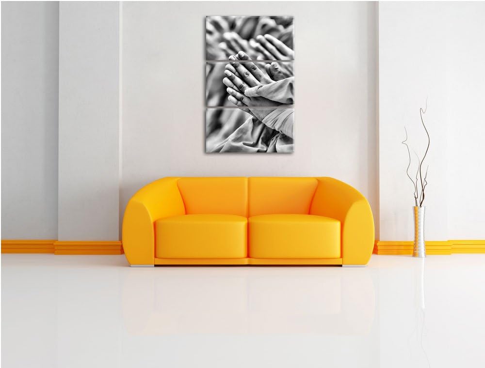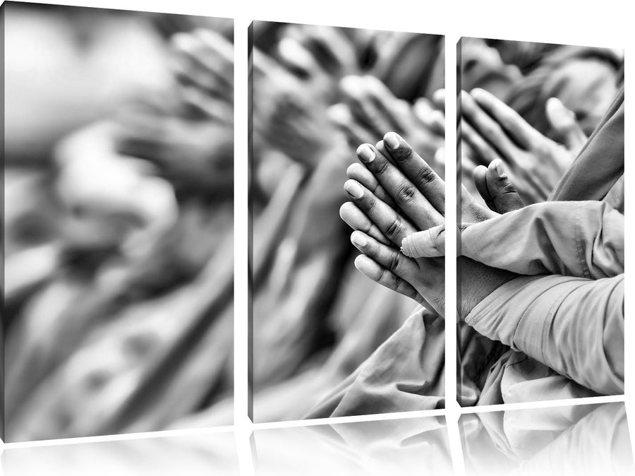Pixxprint Mönche in Tibet als Leinwandbild/Grösse: 3 Teilig (120x80 cm) cm/Wandbild/Kunstdruck/ferti