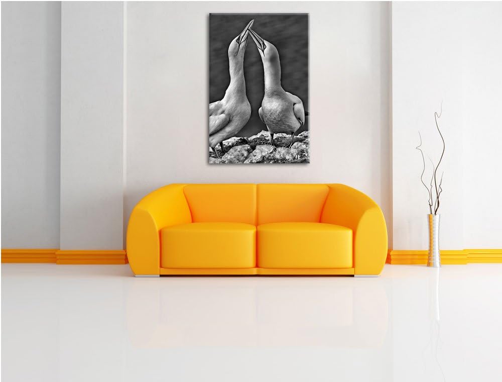 Pixxprint Monocrome, aussergewöhnliche Vögel am Meer, Format: 100x70 auf Leinwand, riesige Bilder fe