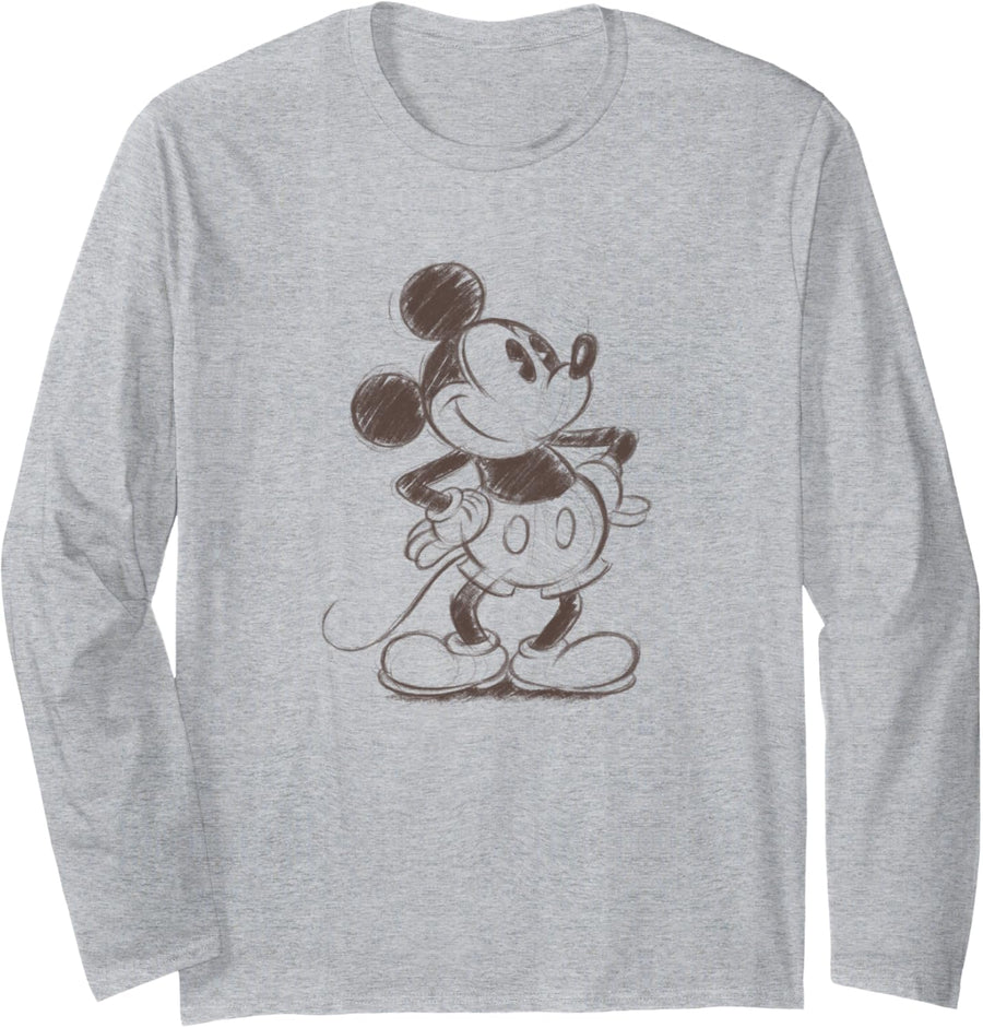 Disney Mickey Mouse Classic Retro Sketched Profile Langarmshirt