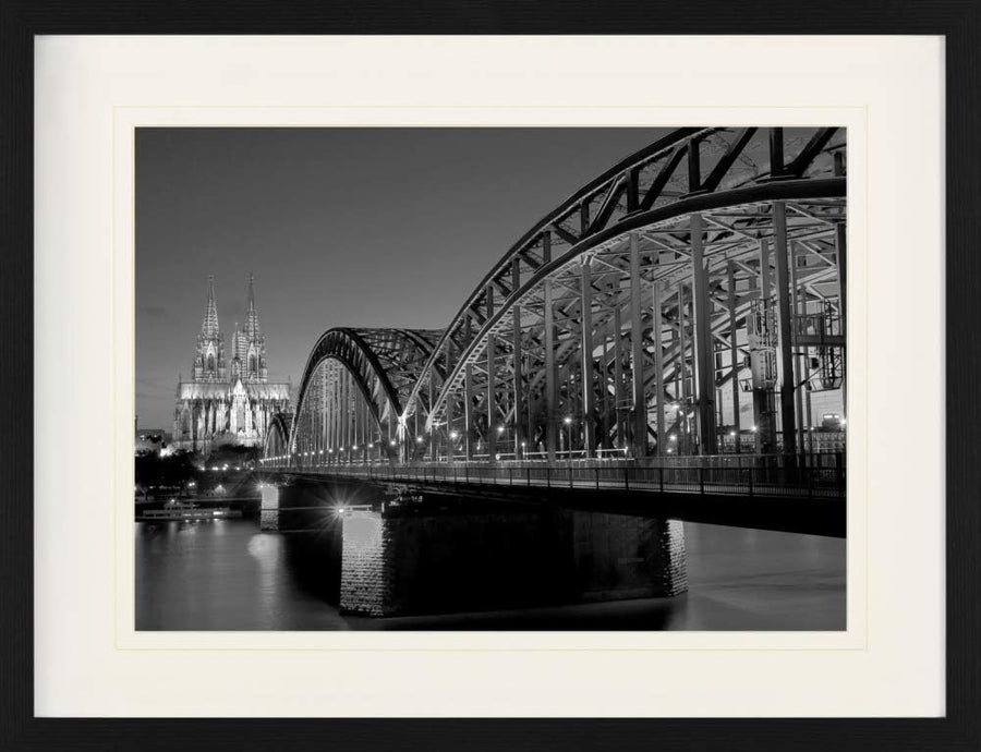 1art1 Köln Poster Hohenzollernbrücke Und Kölner Dom Bei Nacht S/W Gerahmtes Bild Mit Edlem Passepart